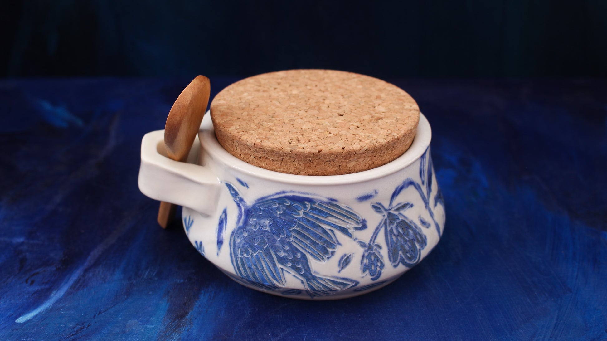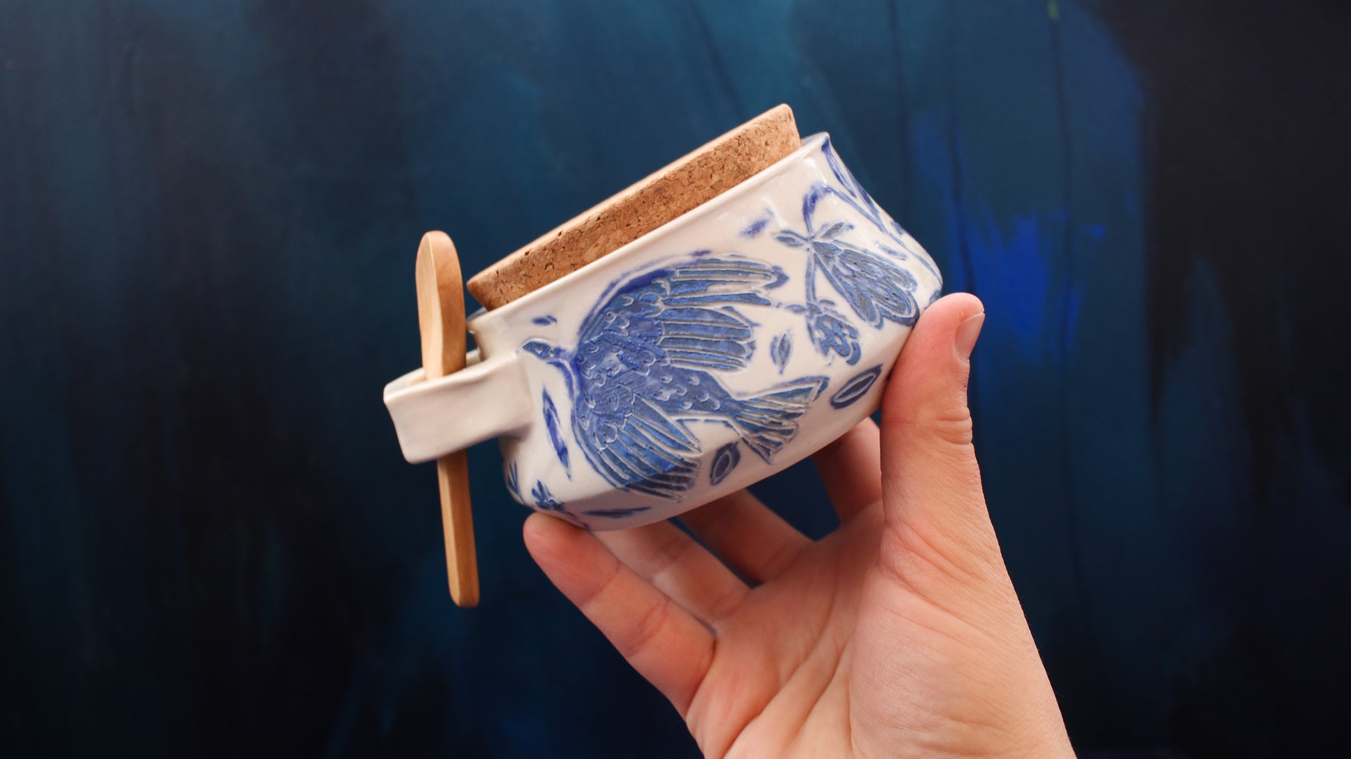 11oz Blue Dove Sugar Jar/Salt Cellar Woodfired