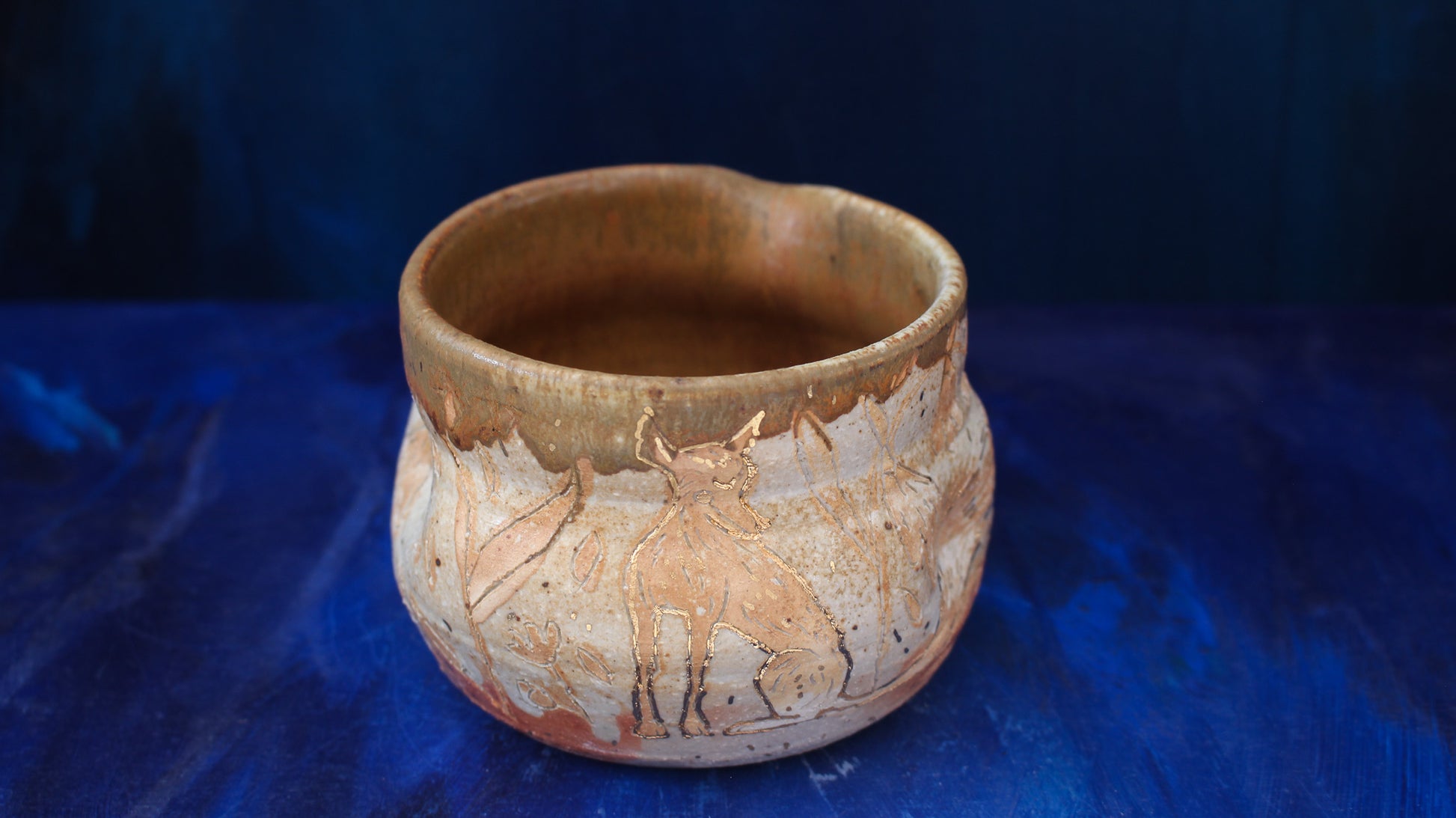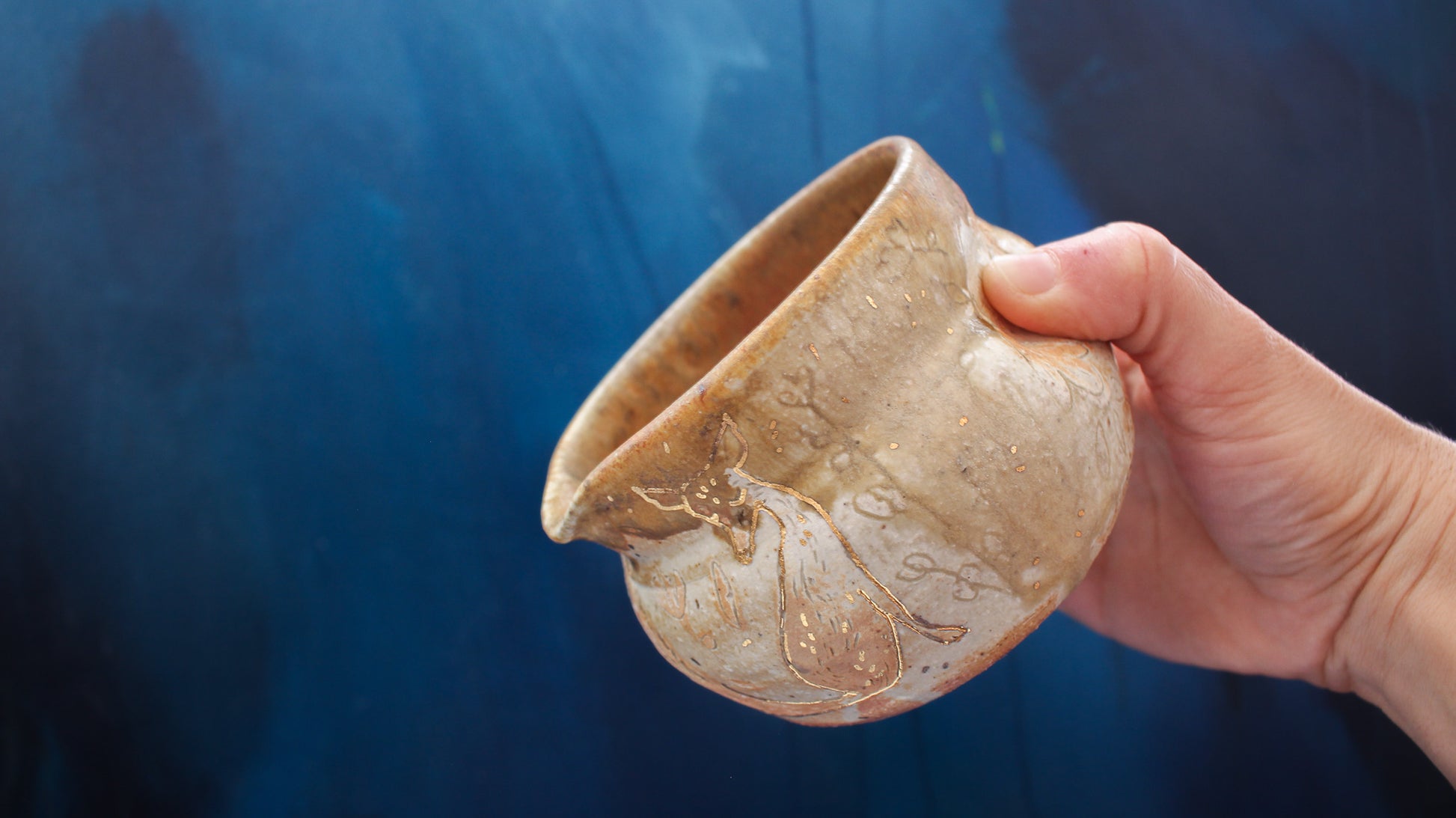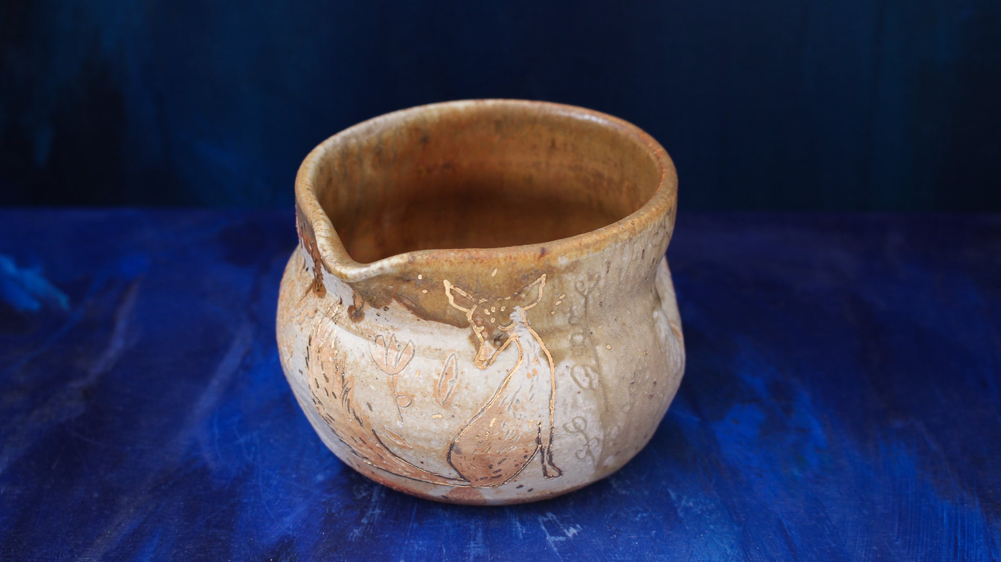 13oz Golden Foxy Pinch Pitcher Woodfired
