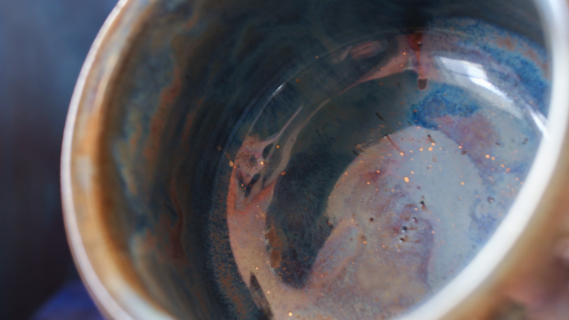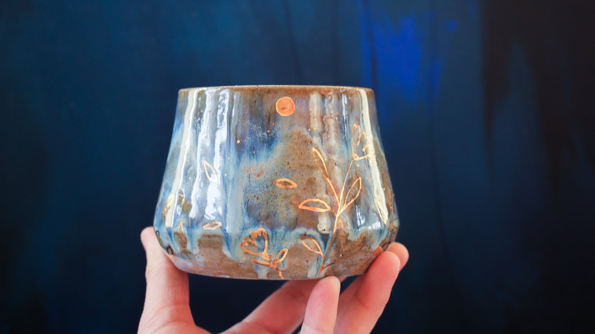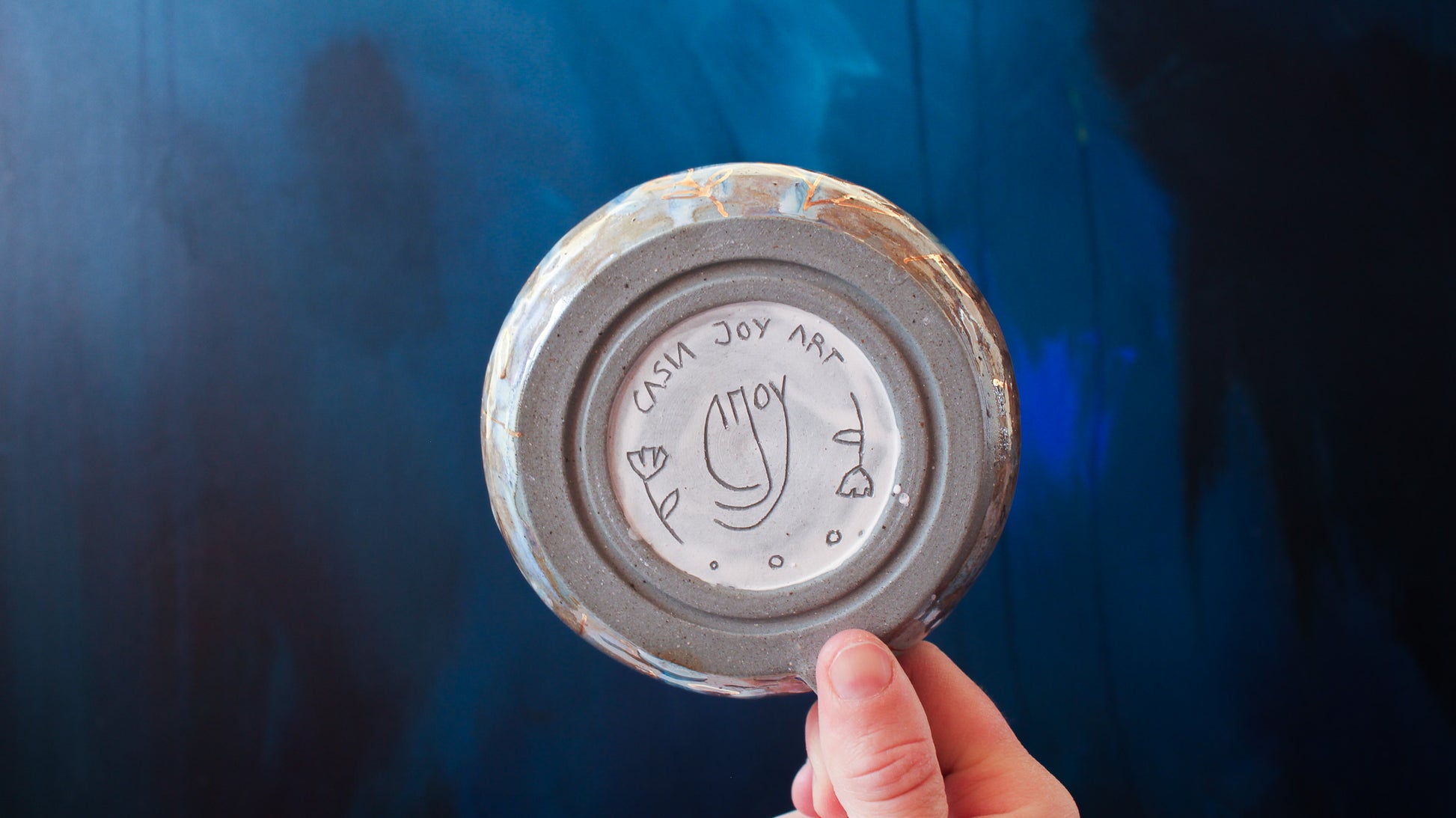This stoneware mug is individually thrown, glazed & embellished with gold luster from start to finish.