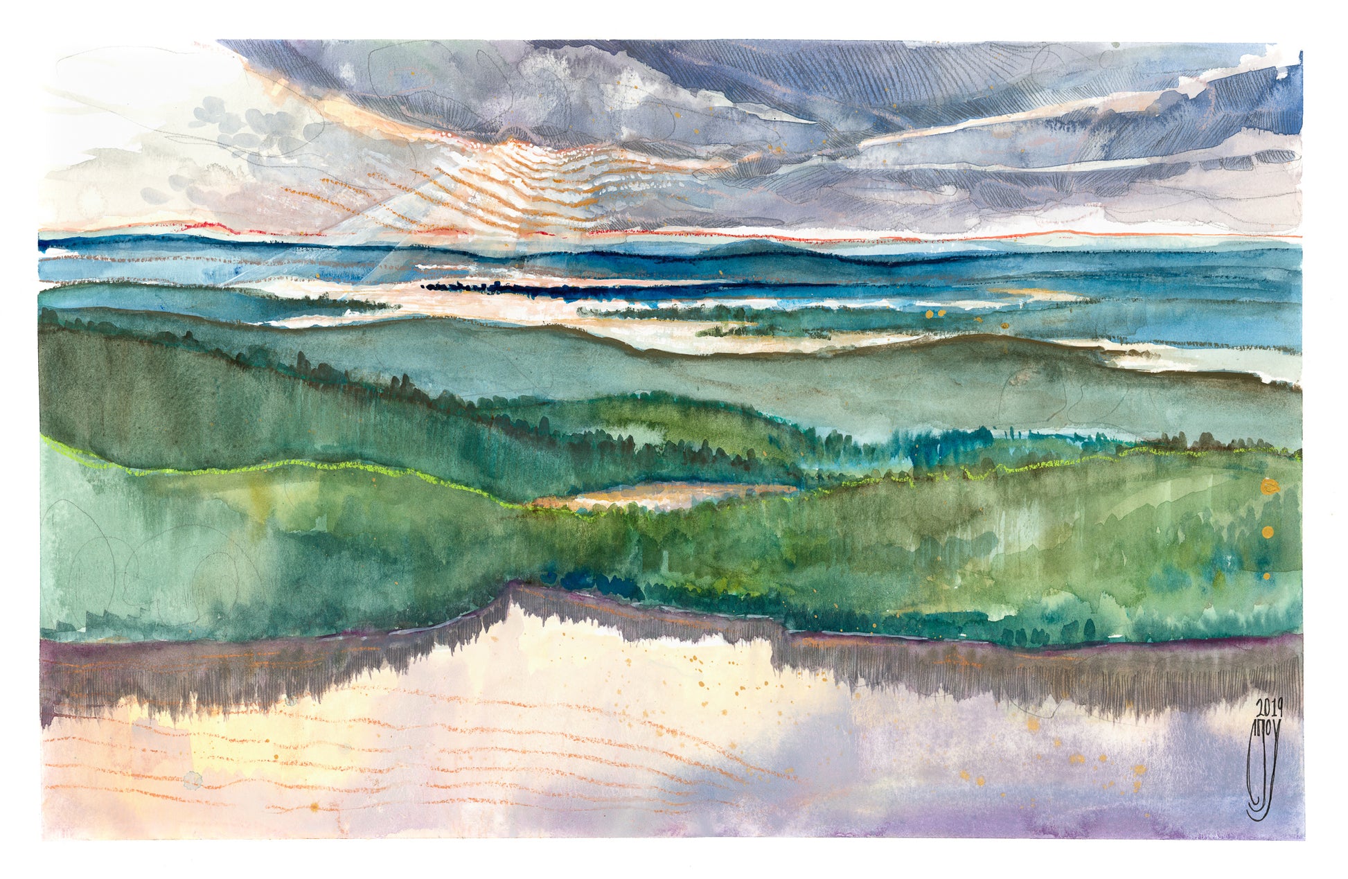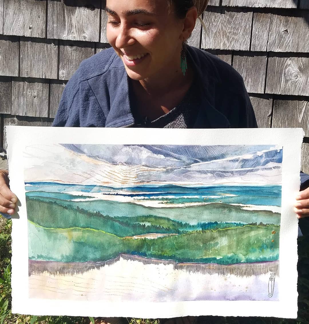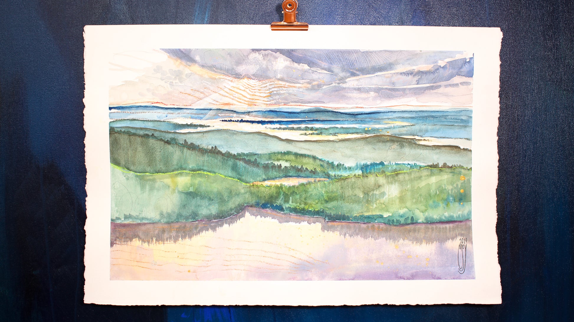 15"x22.5" Watercolor, Watercolor Pencil, Graphite Pencil, Dry Pastel, Ink & Gold Acrylic on Arches 140 lb Cold Press Watercolor Paper with a Deckled Edge