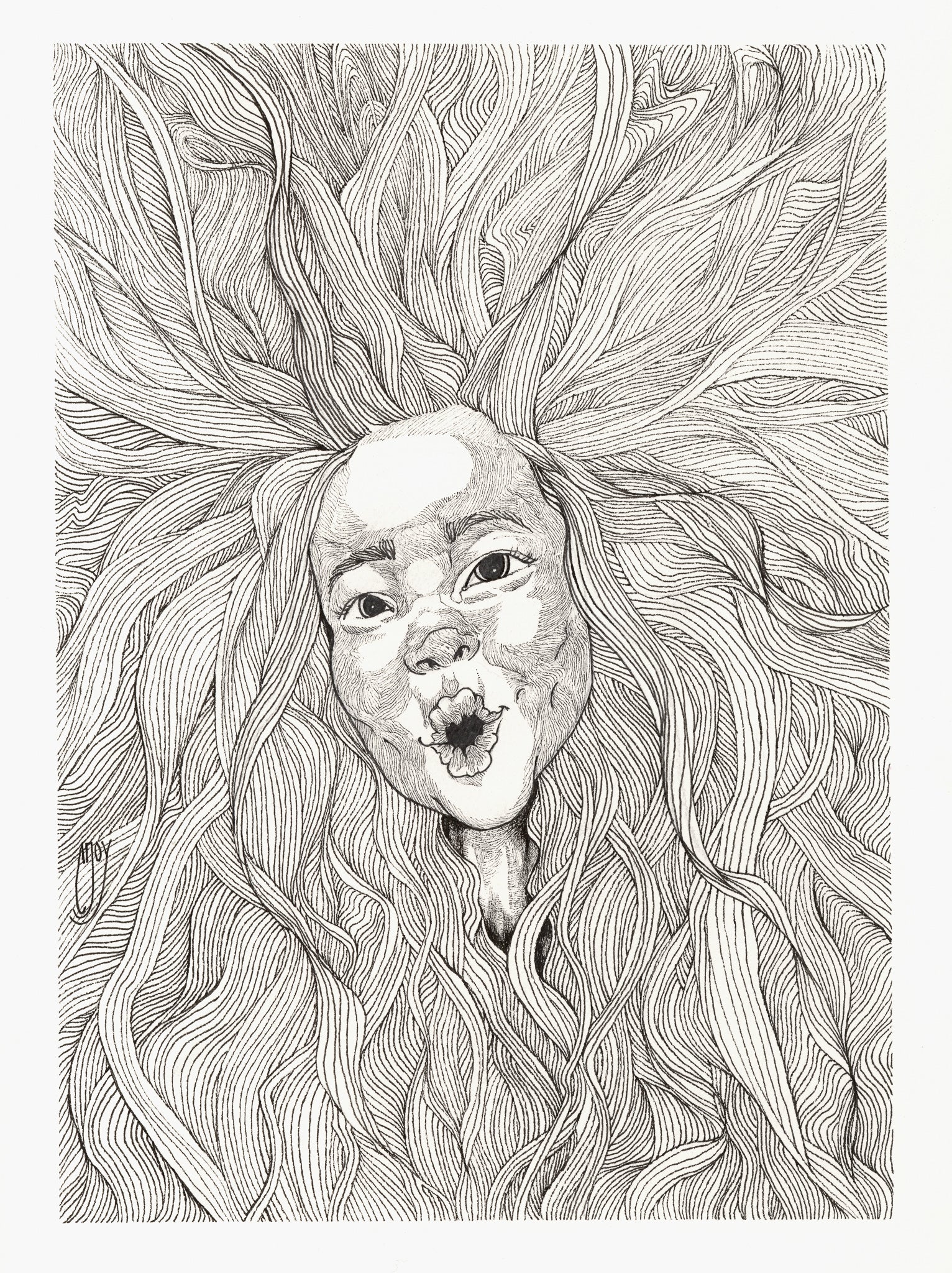 11"x15" Ink Pen on Arches 140 lb Cold Press Watercolor Paper with a Deckled Edge