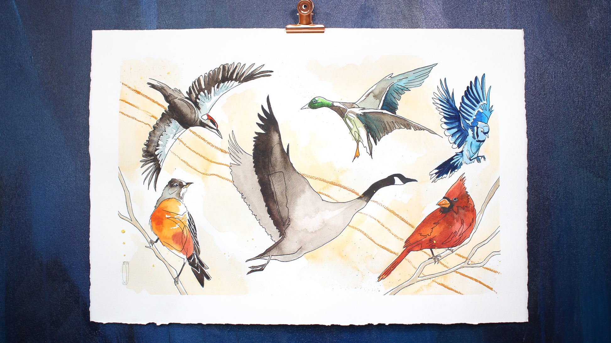 15"x22.5" Watercolor, Dry Pastel, Ink Pen, Ink, Gouache & Gold Acrylic on Arches 140 lb Cold Press Watercolor Paper with a Deckled Edge