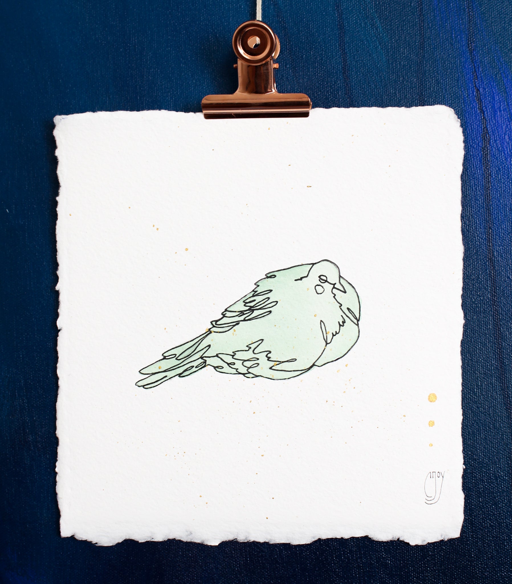 7.5"x8" Watercolor, Gouache, Gold Acrylic, Ink Pen & Acrylic Ink on Arches 300 lb Cold Press Watercolor Paper with a Deckled Edge