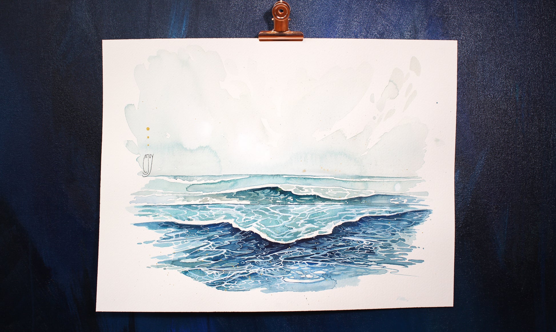 12"x16" Watercolor, Gold Acrylic & Ink on Arches 140 lb Cold Press Watercolor Paper