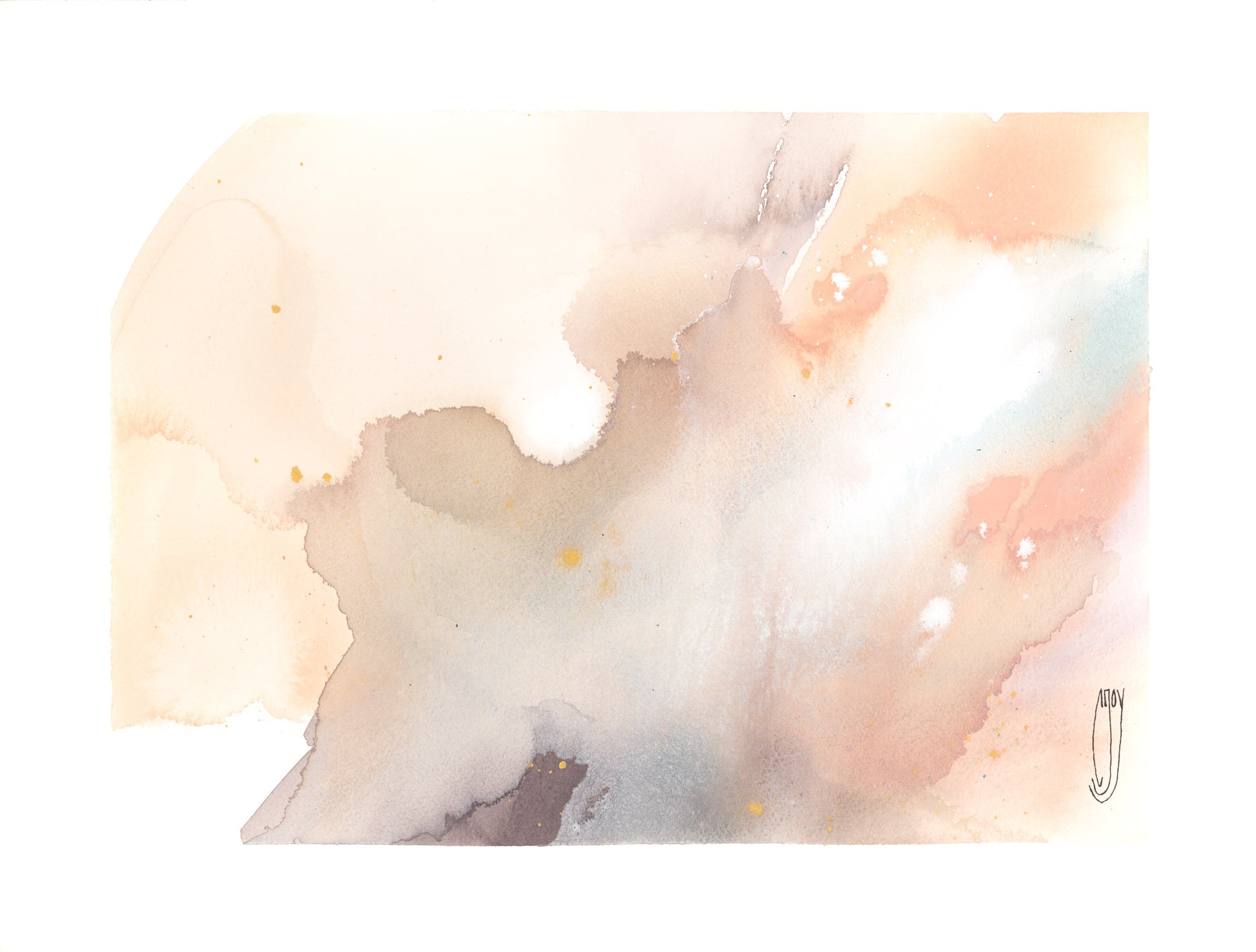 12"x16" Watercolor, Dry Pastel, Gouache, Ink & Gold Acrylic on Arches 140 lb Cold Press Watercolor Paper